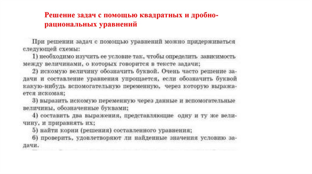 Решение задач с помощью квадратных и дробнорациональных уравнений