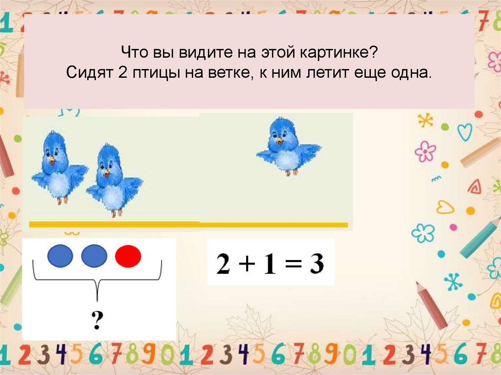 На ветке сидело 3 зеленых птицы, а потомприлетело еще несколько и птиц стало больше