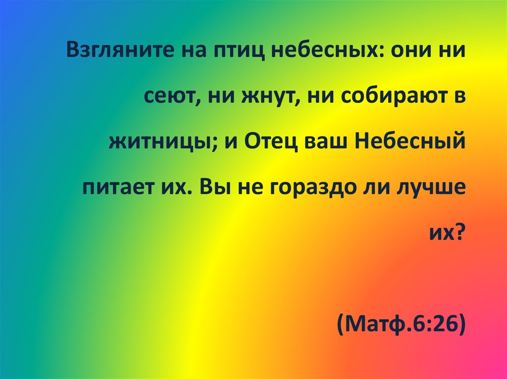 Взгляните на птиц небесных: они нисеют, ни жнут, ни собирают в