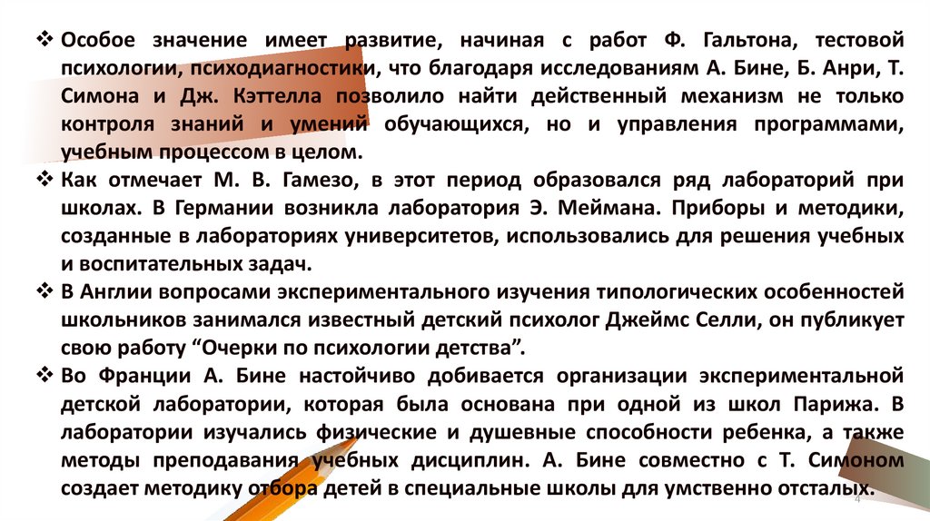 работах А. П. Нечаева, А. Бине и Б. Анри, М.
