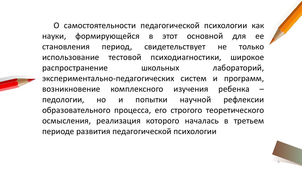 О самостоятельности педагогической психологии какнауки, формирующейся в этот основной для ее