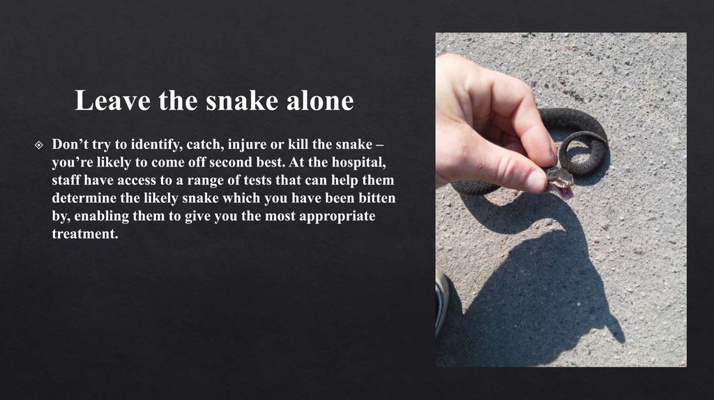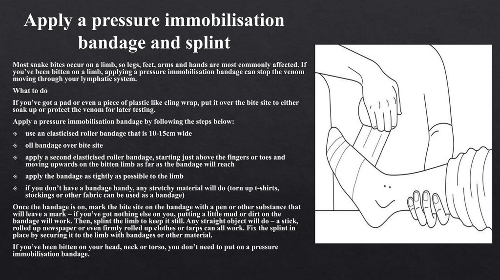 First aid for a snake bite