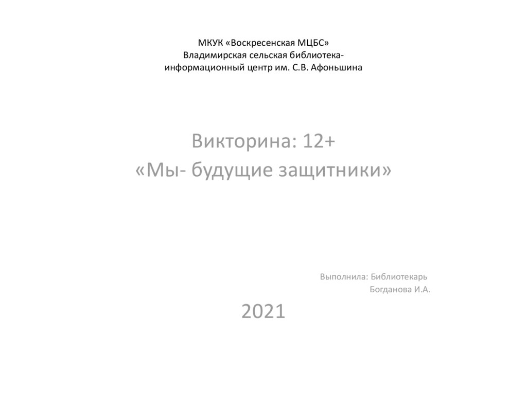 Выполнила: Библиотекарь