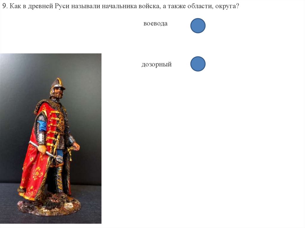 99. Как в древней Руси называли начальника войска, а также области, округа?воевода