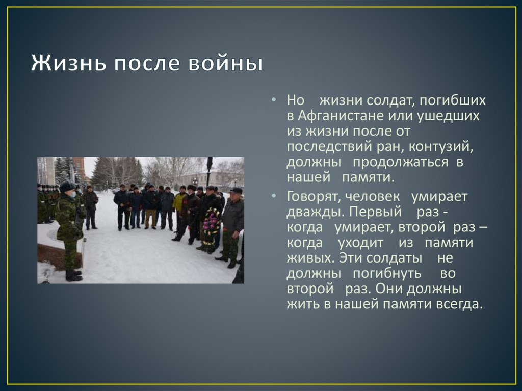 • Но жизни солдат, погибшихв Афганистане или ушедших