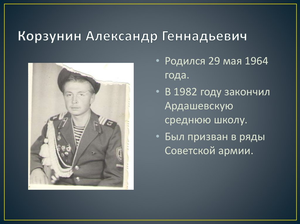Памяти солдата посвящается. Корзунин Александр Геннадьевич