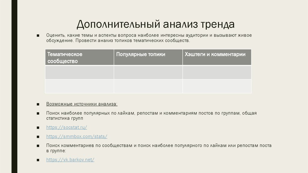 Формирование тренда и оценка его релевантности ценностям аудитории