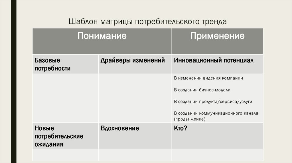 Шаблон матрицы потребительского трендаПонимание