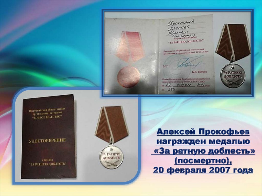 Алексей Прокофьевнагражден медалью