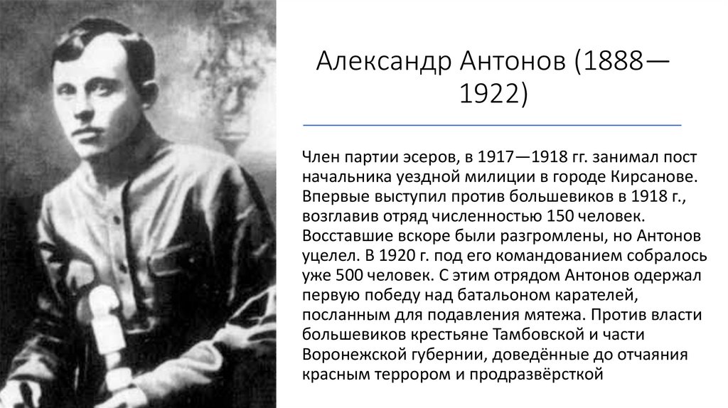 Восставшие вскоре были разгромлены, но Антонов