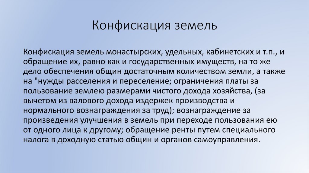 Конфискация земельКонфискация земель монастырских, удельных, кабинетских и т.п., и