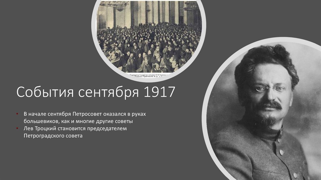 События сентября 1917• В начале сентября Петросовет оказался в руках