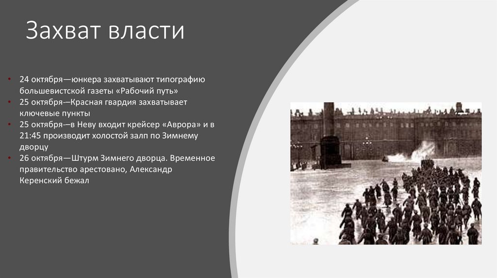 Захват власти• 24 октября—юнкера захватывают типографию