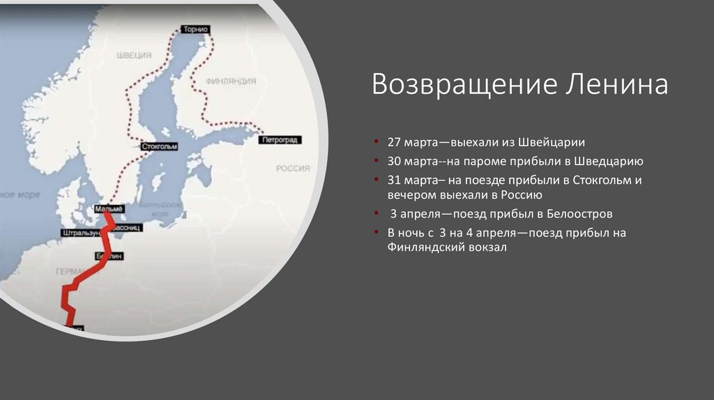 Возвращение Ленина• 27 марта—выехали из Швейцарии