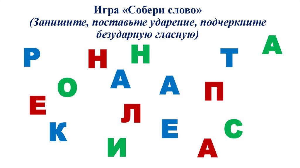 Игра «Собери слово»(Запишите, поставьте ударение, подчеркните