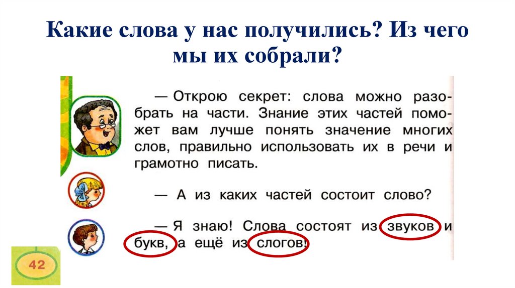 Какие слова у нас получились? Из чегомы их собрали?