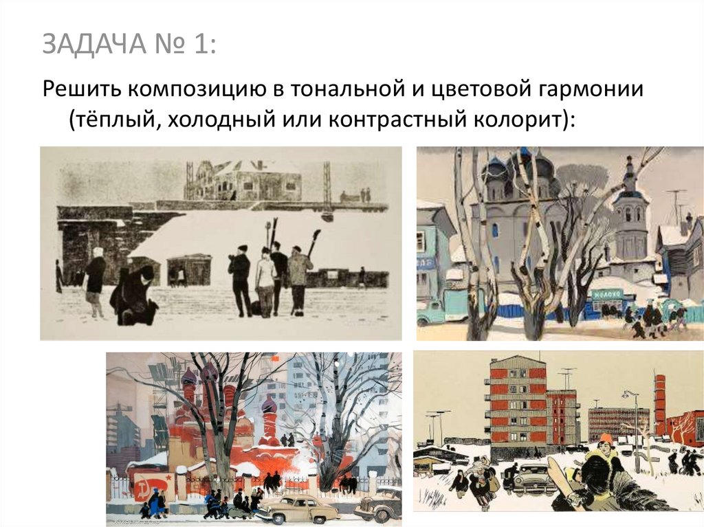 ЗАДАЧА № 1:Решить композицию в тональной и цветовой гармонии