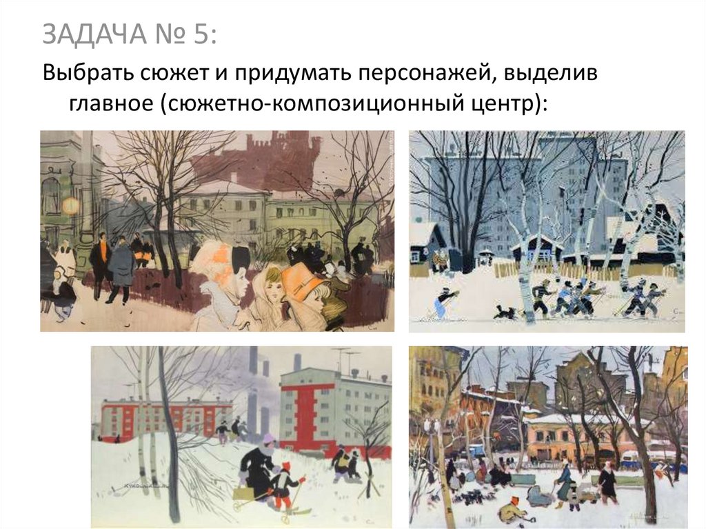 ЗАДАЧА № 5:Выбрать сюжет и придумать персонажей, выделив