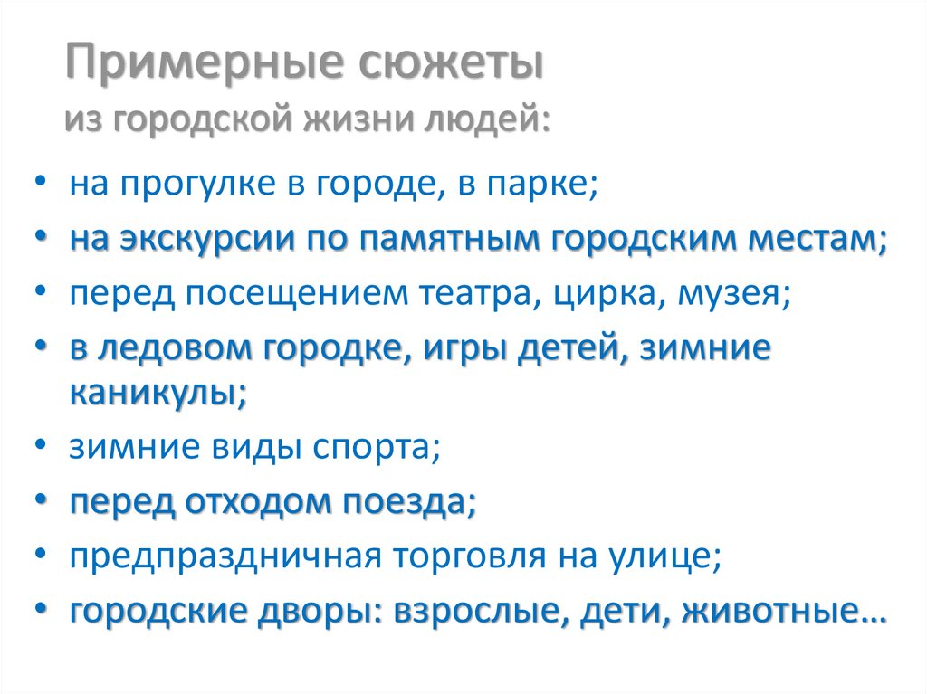 Примерные сюжетыиз городской жизни людей: