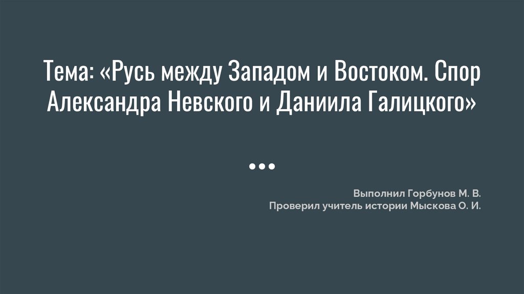 Тема: «Русь между Западом и Востоком. СпорАлександра Невского и Даниила Галицкого»