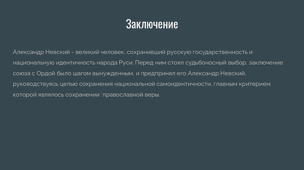 ЗаключениеАлександр Невский - великий человек, сохранивший русскую государственность и