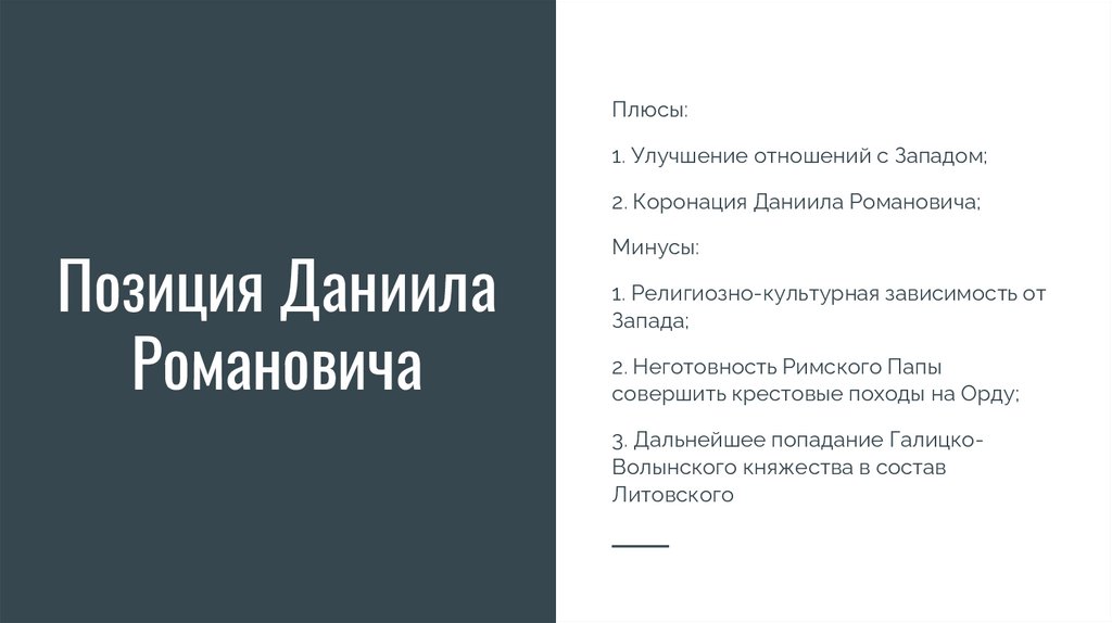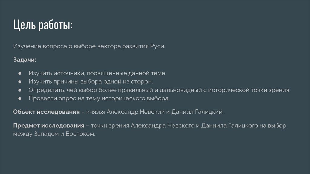 Предмет исследования – точки зрения Александра Невского и Даниила Галицкого на выбор