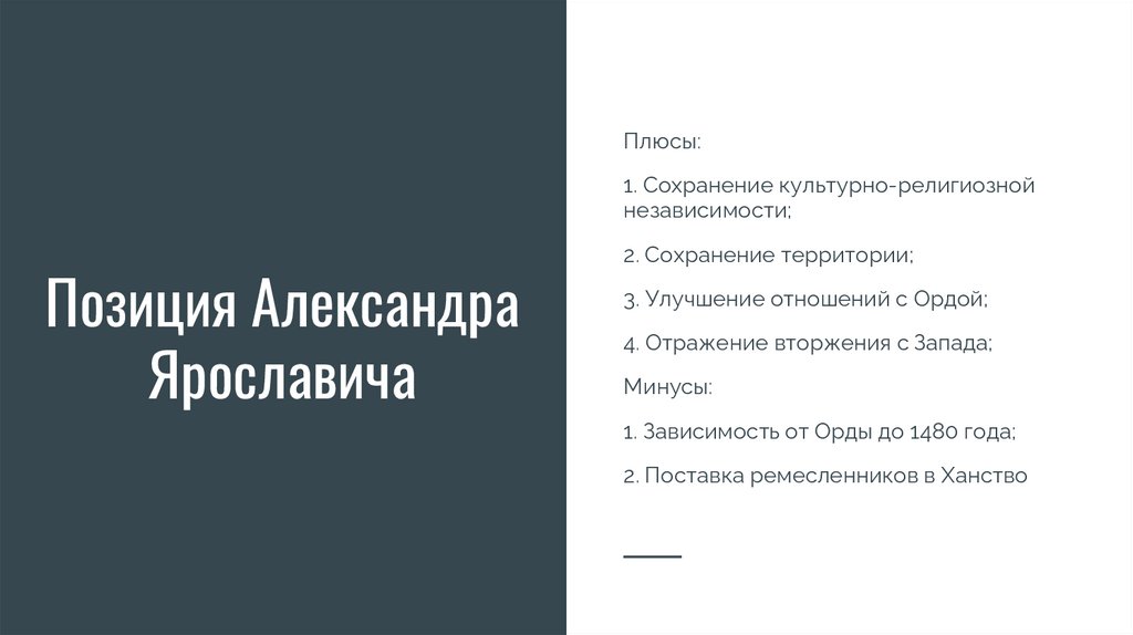 союза с Ордой было шагом вынужденным, и предпринял его Александр Невский,