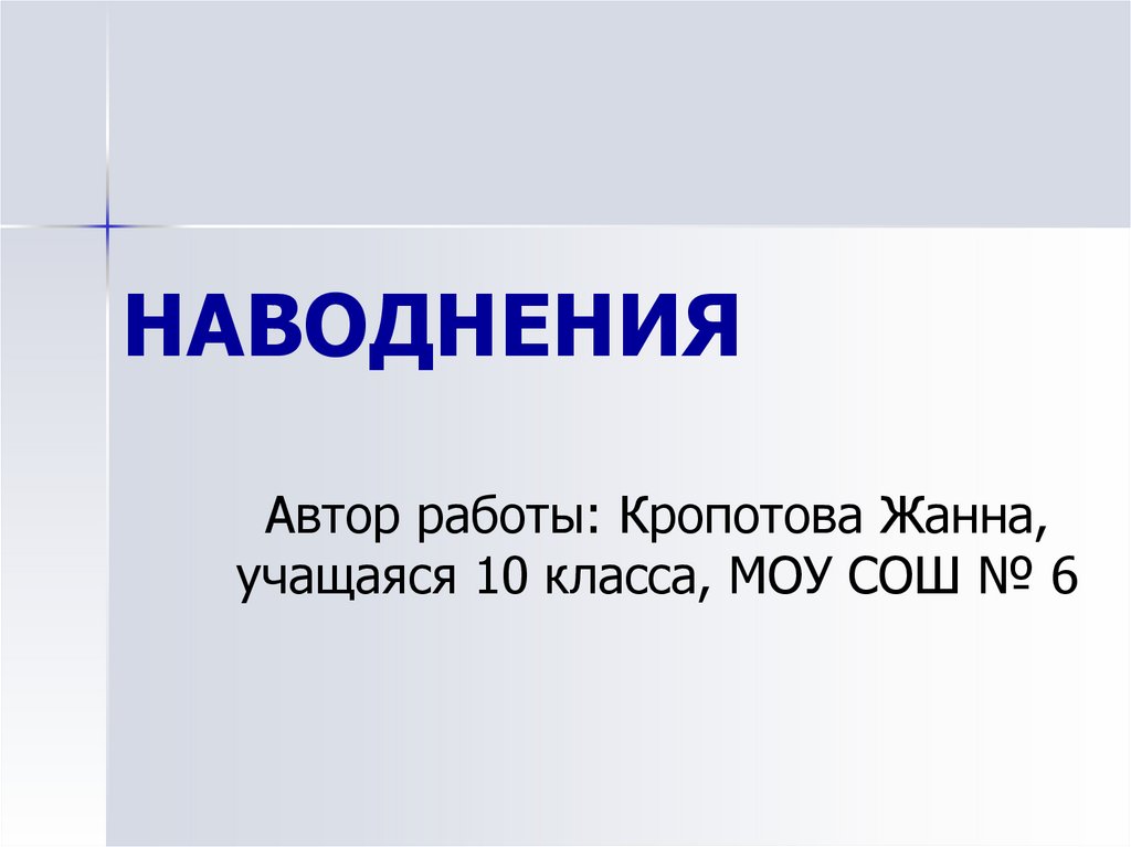НАВОДНЕНИЯАвтор работы: Кропотова Жанна,