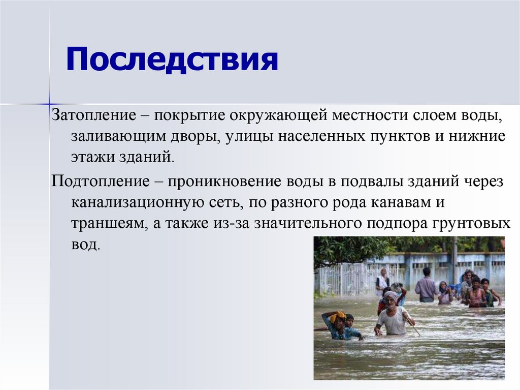 ПоследствияЗатопление – покрытие окружающей местности слоем воды,