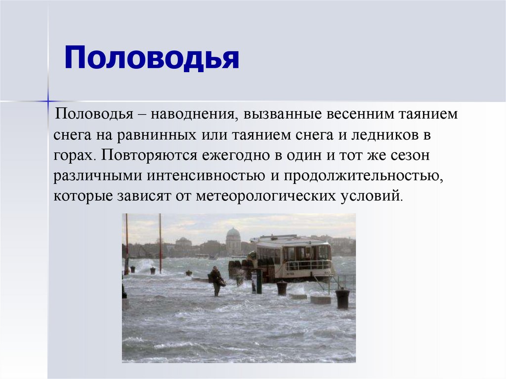 ПоловодьяПоловодья – наводнения, вызванные весенним таянием