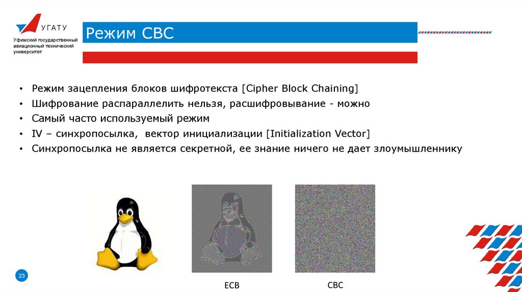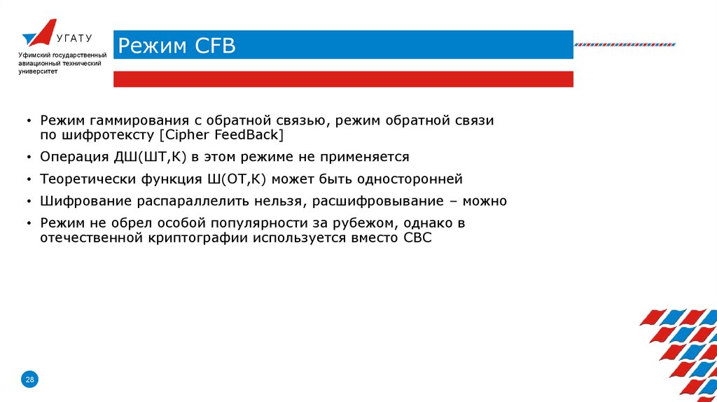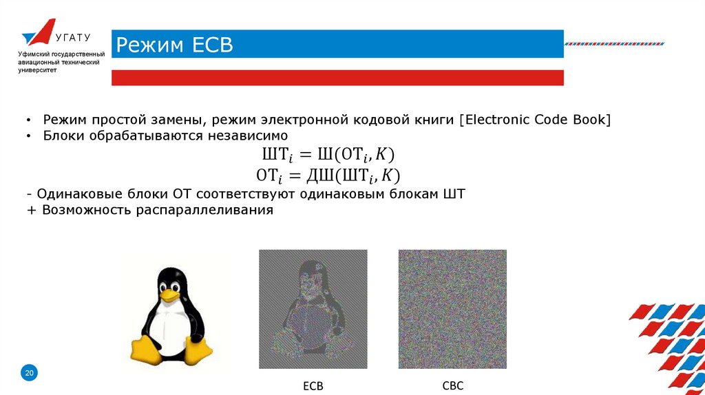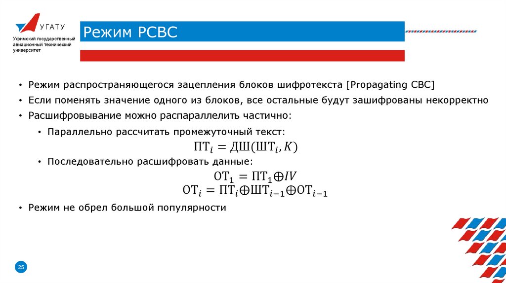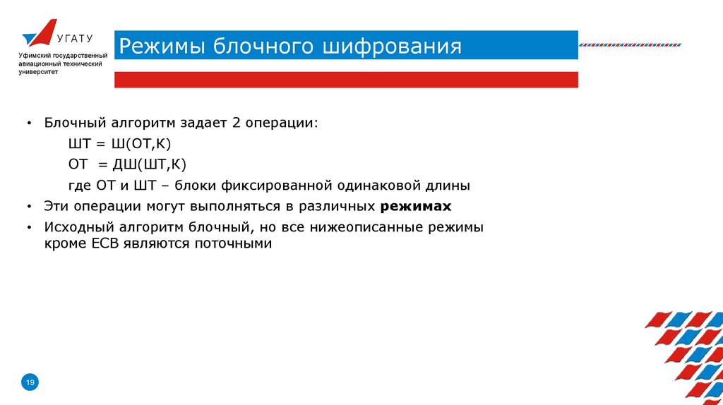 • Режимы блочного шифрования