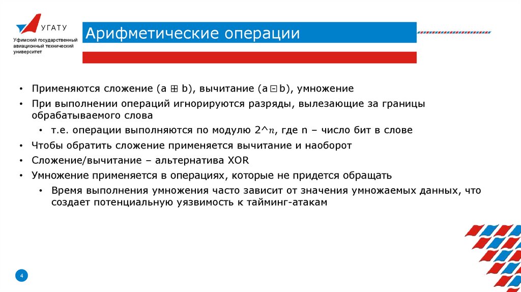 • Арифметические операции