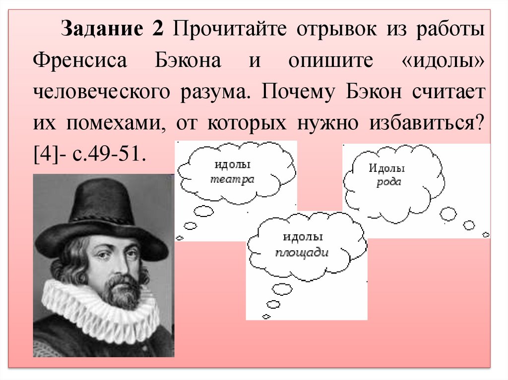 Задание 2 Прочитайте отрывок из работыФренсиса Бэкона и опишите «идолы»