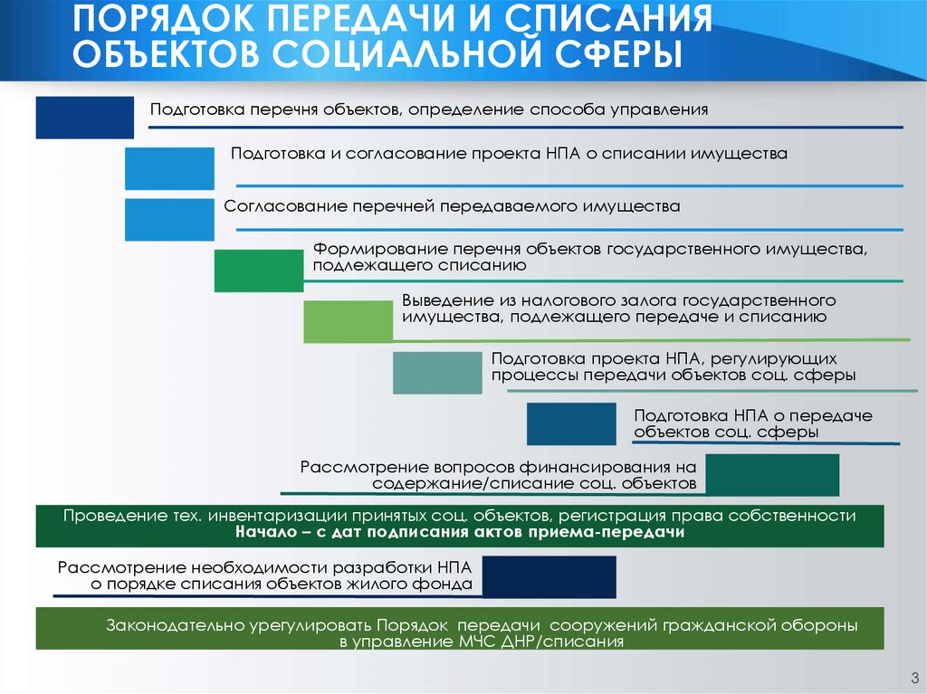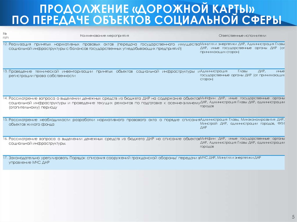 17. Законодательно урегулировать Порядок списания сооружений гражданской обороны/ передачи в МЧС ДНР, Минугля и энергетики ДНР