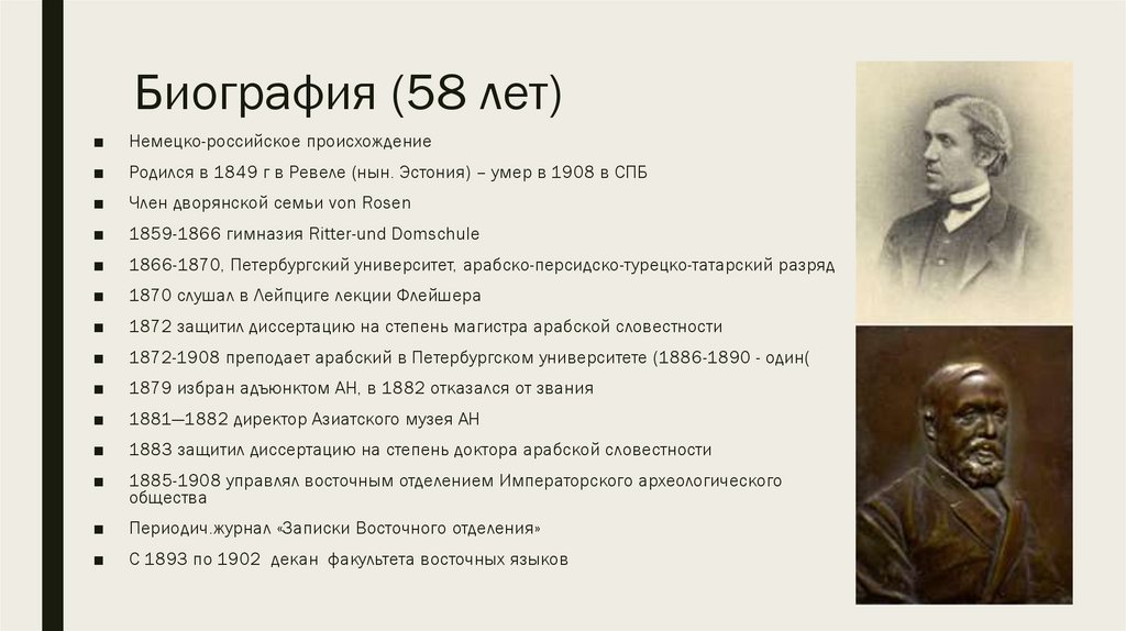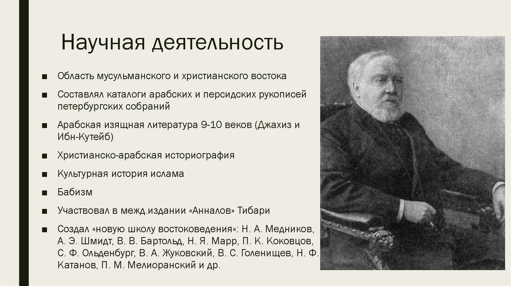 1872-1908 преподает арабский в Петербургском университете (1886-1890 - один(