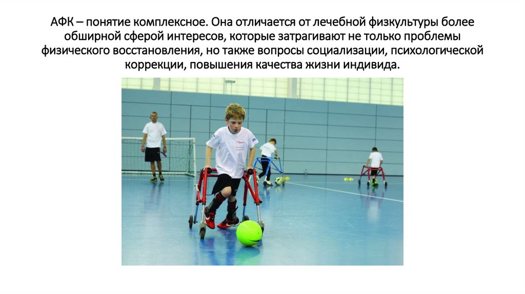 АФК – понятие комплексное. Она отличается от лечебной физкультуры болееобширной сферой интересов, которые затрагивают не только проблемы