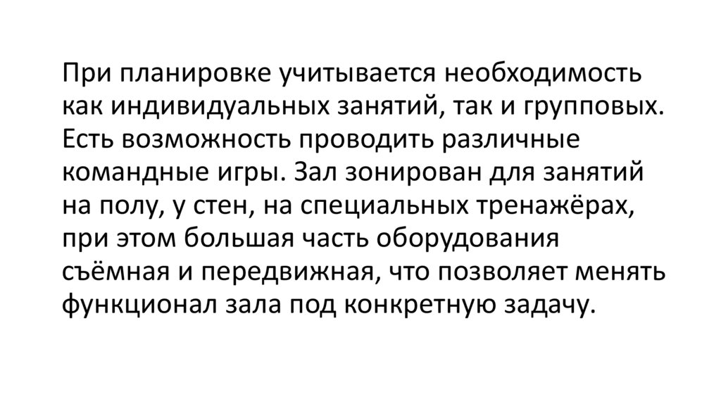 При планировке учитывается необходимостькак индивидуальных занятий, так и групповых.