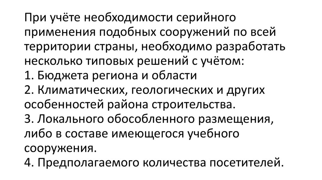 При учёте необходимости серийногоприменения подобных сооружений по всей