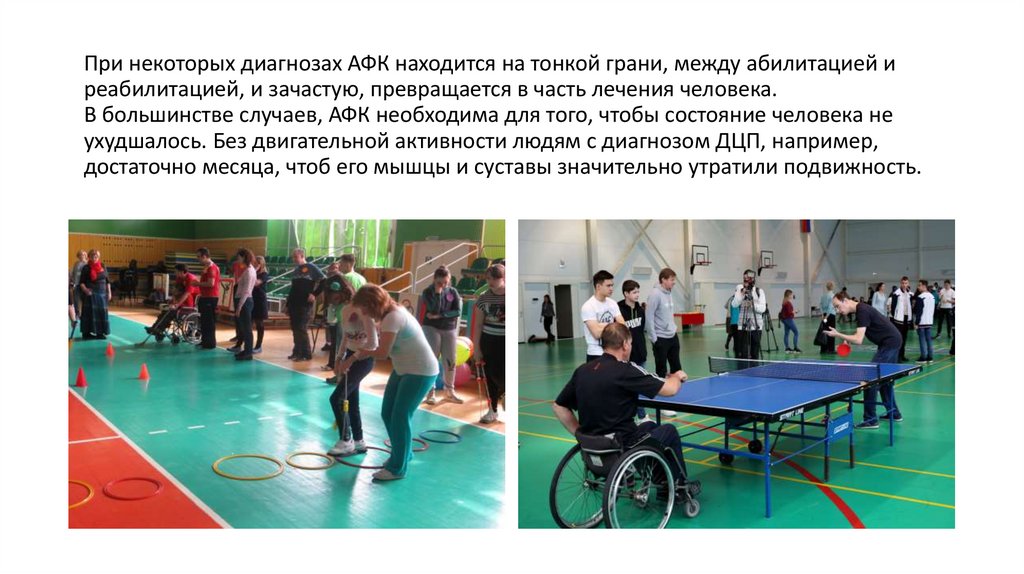 При некоторых диагнозах АФК находится на тонкой грани, между абилитацией иреабилитацией, и зачастую, превращается в часть лечения человека.