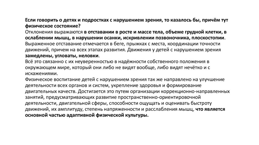 Физическое воспитание детей с нарушением зрения так же направлено на улучшение