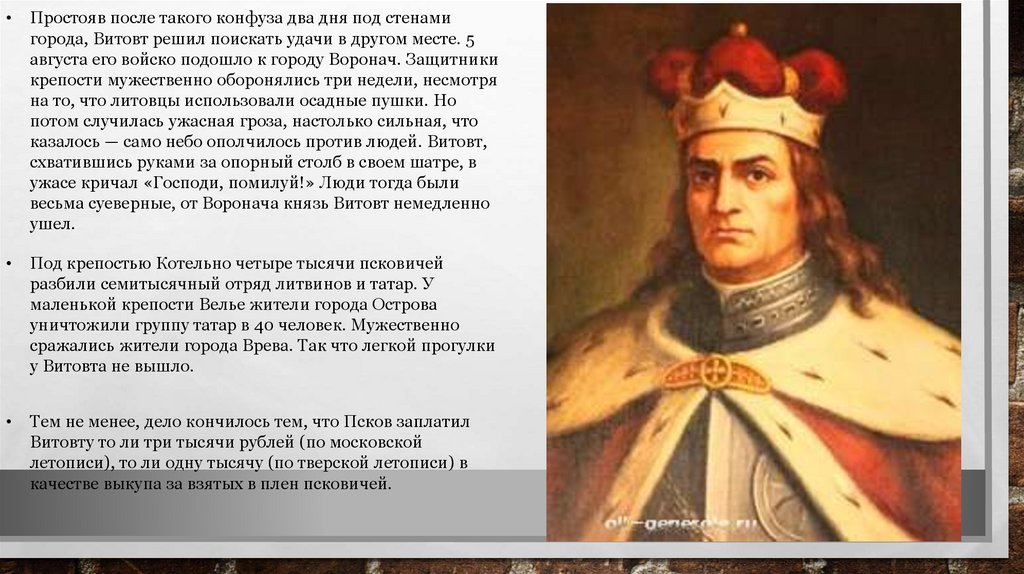 • Литовский князь, как уже сказано, до самойсмерти Василия I Дмитриевича оставался