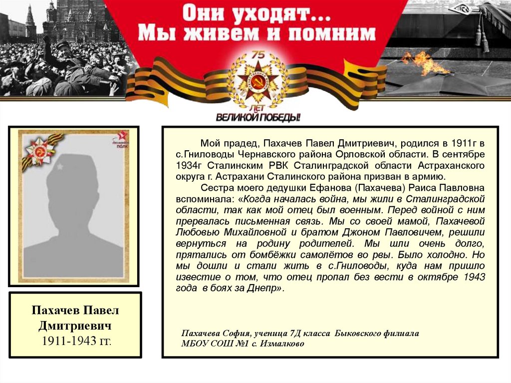 Мой прадед, Пахачев Павел Дмитриевич, родился в 1911г в