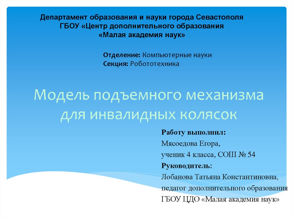 Департамент образования и науки города СевастополяГБОУ «Центр дополнительного образования