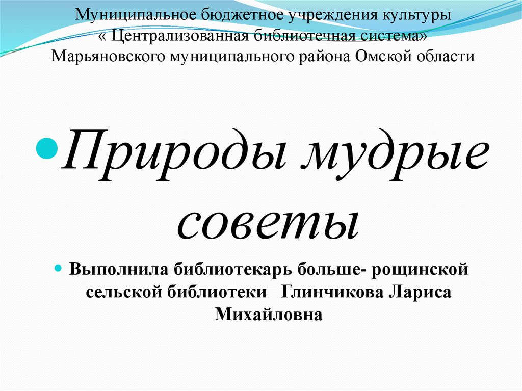 Выполнила библиотекарь больше- рощинской