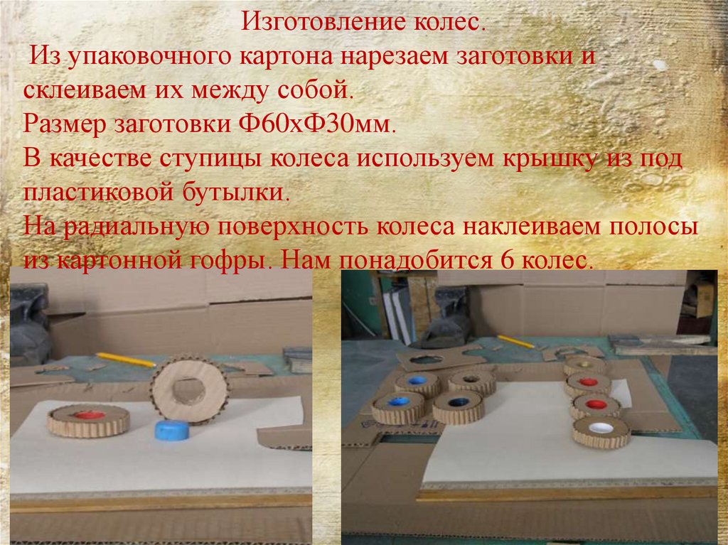 из картонной гофры. Нам понадобится 6 колес.