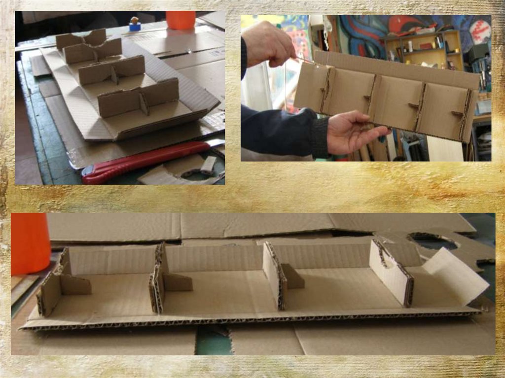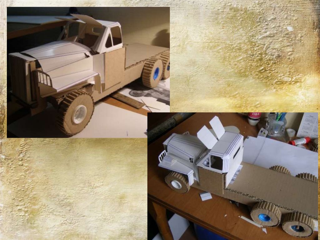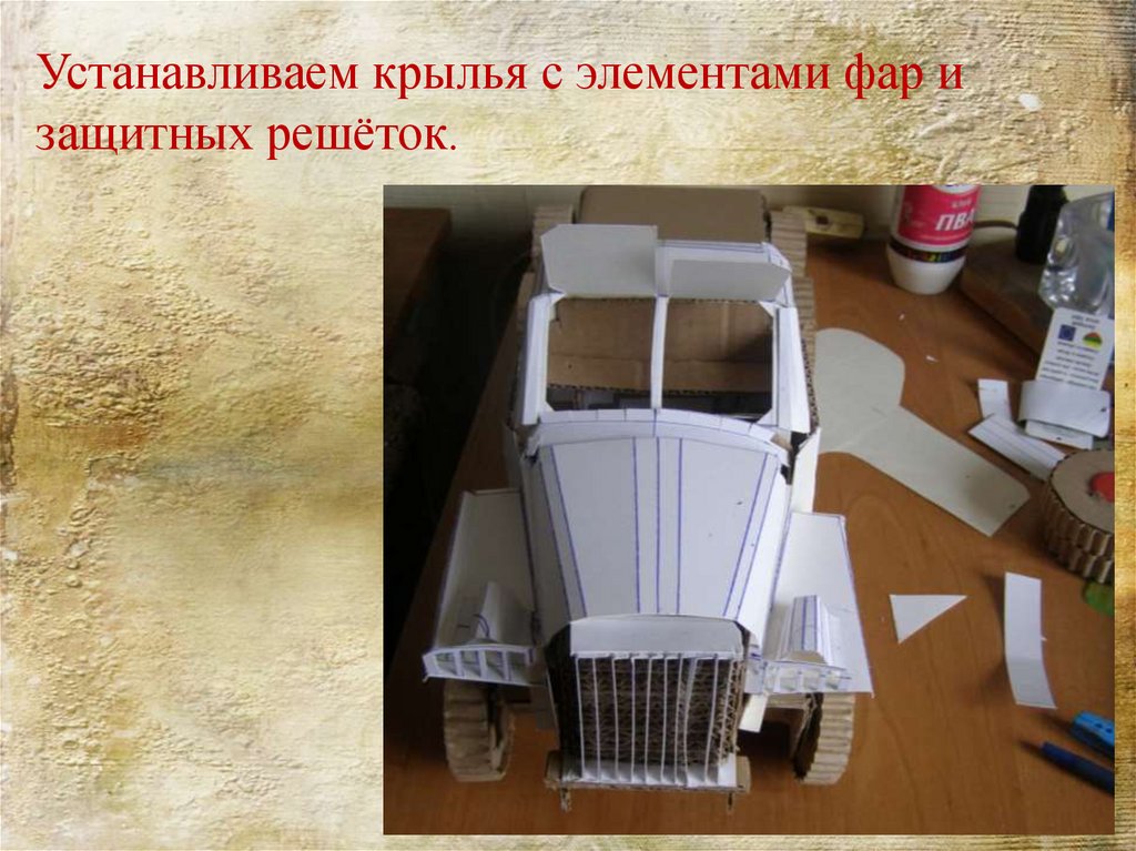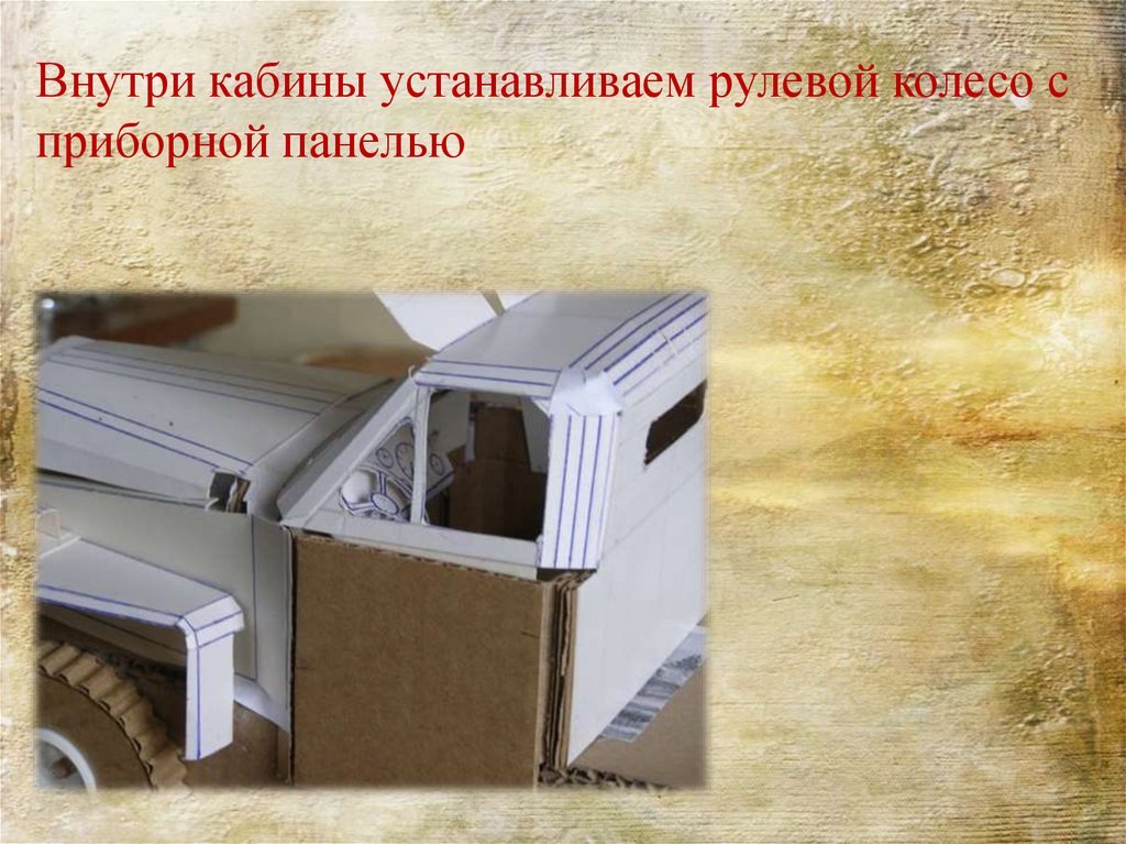 Выполняем сборку капота и кабины используязаготовки из типографского картона.