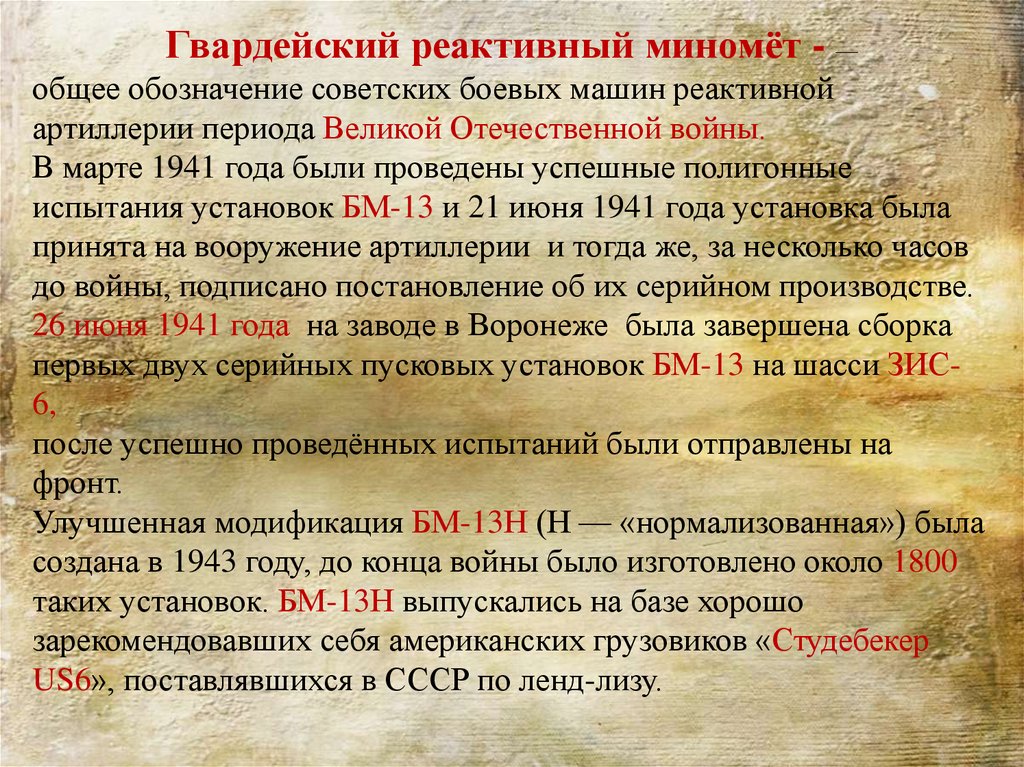 Гвардейский реактивный миномёт - —общее обозначение советских боевых машин реактивной