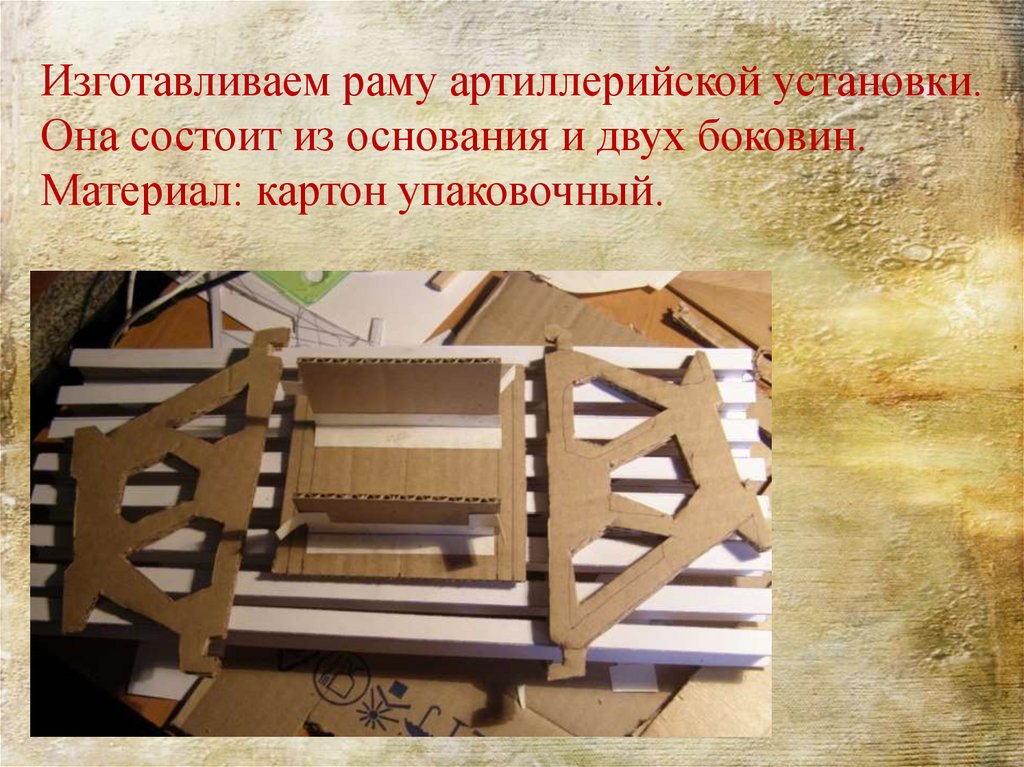 Изготавливаем раму артиллерийской установки.Она состоит из основания и двух боковин.