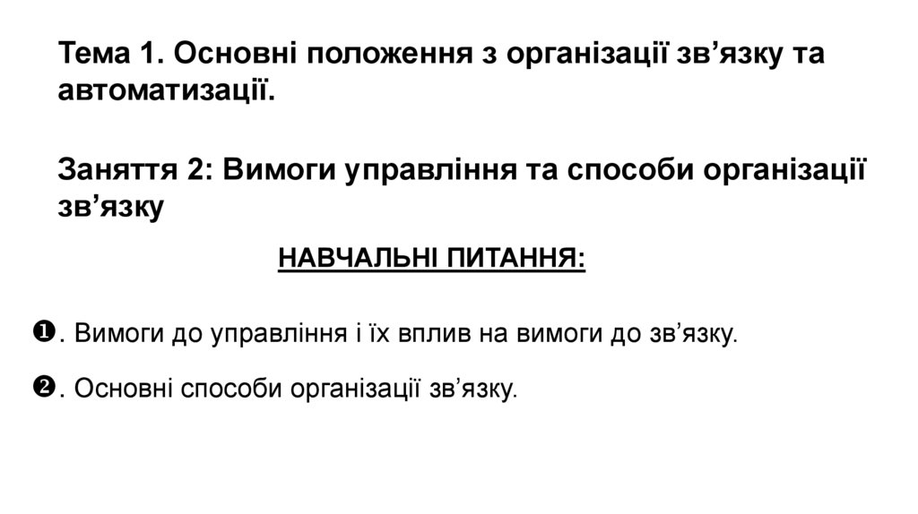 Тема 1. Основні положення з організації зв’язку таавтоматизації.