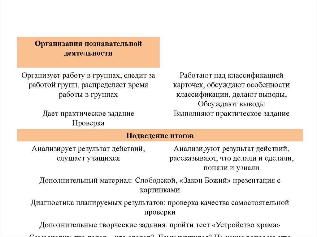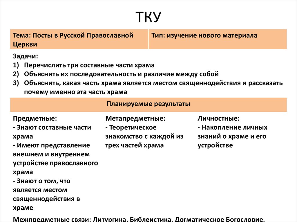 Технологическая карта урокаУстройство Православного